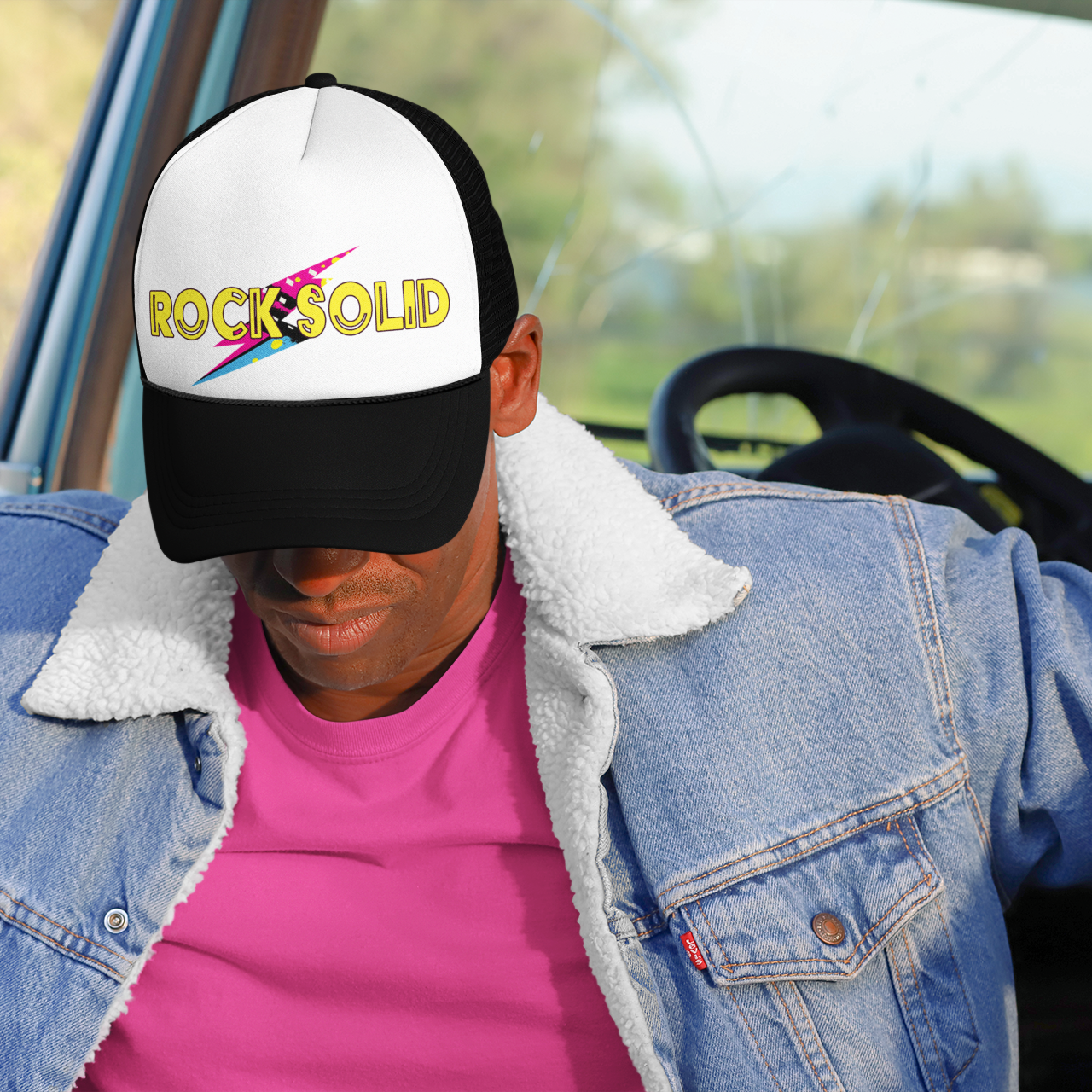 This trucker hat in hot pink or black is ROCK SOLID...nuff said.