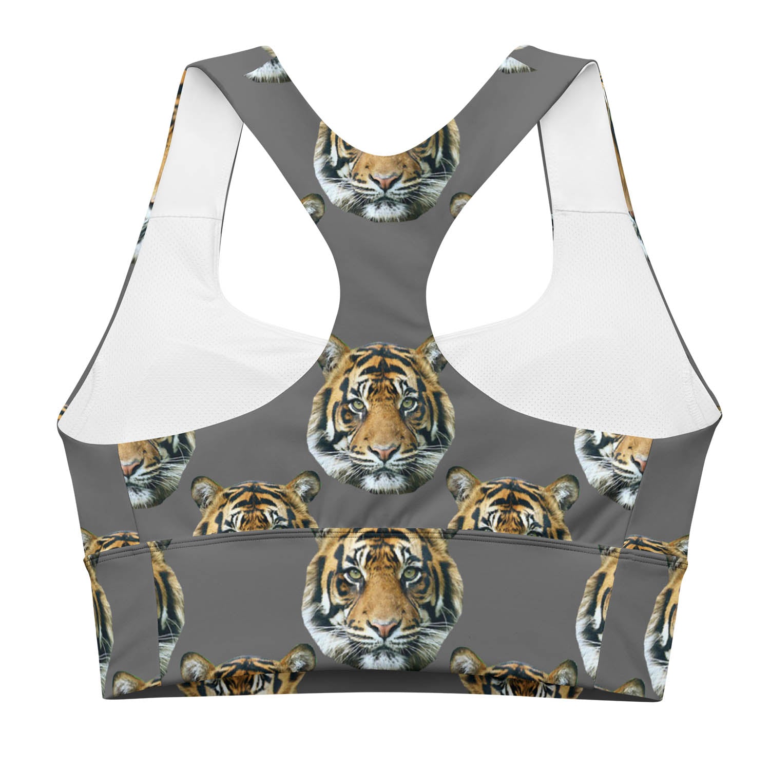 Tiger Face Longline Sports Bra in Grey (XS-3XL)
