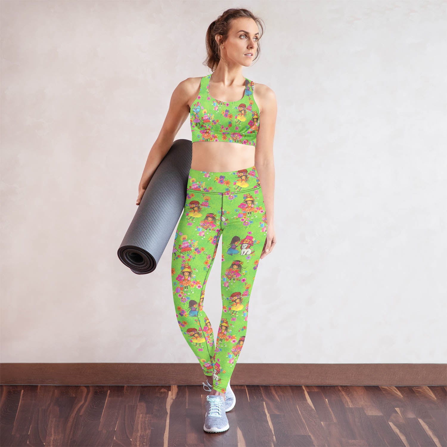 Bright green and hot pink vintage girls and flowers, what a wonderful world to live in!