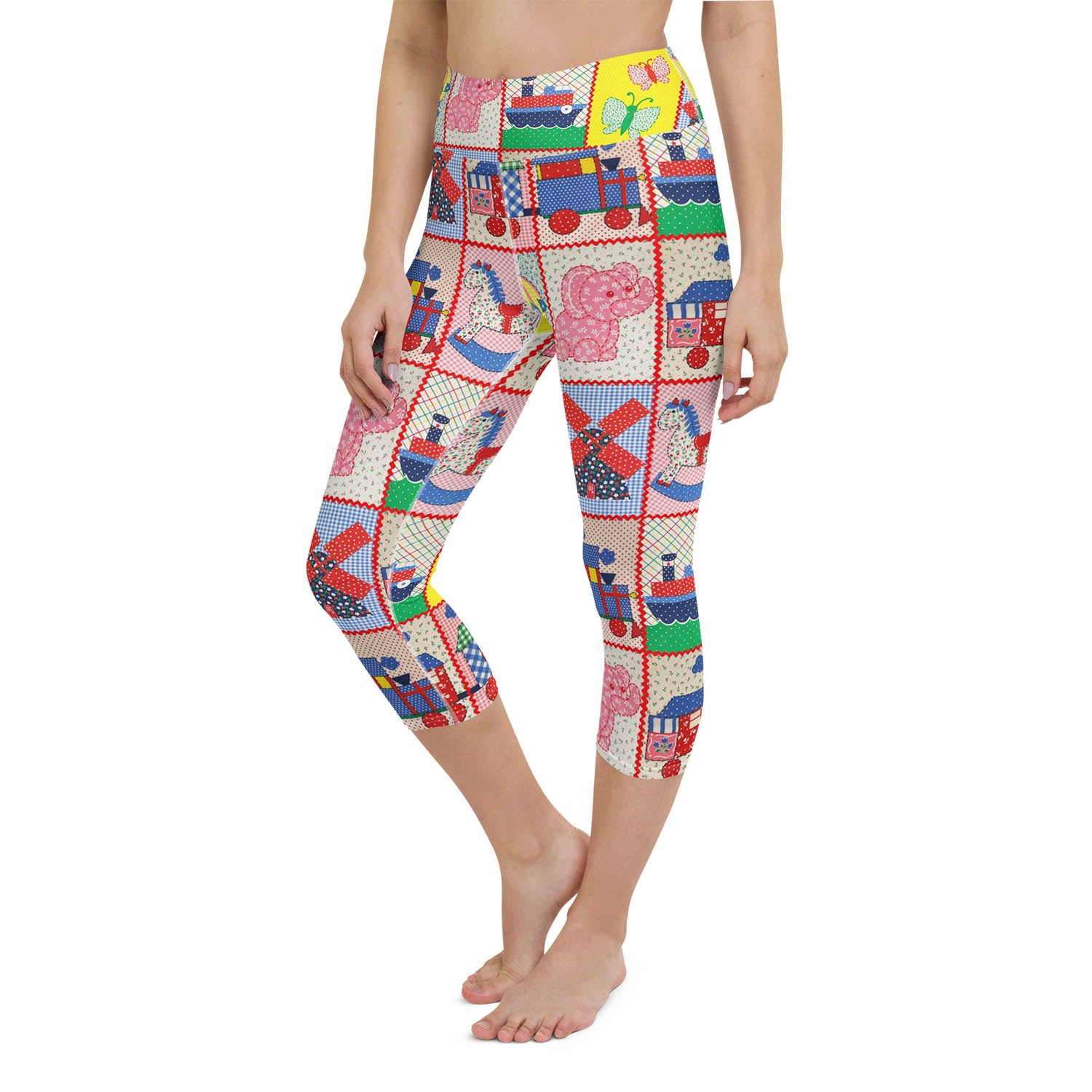 Vintage Pink Elephant Capri Workout Leggings